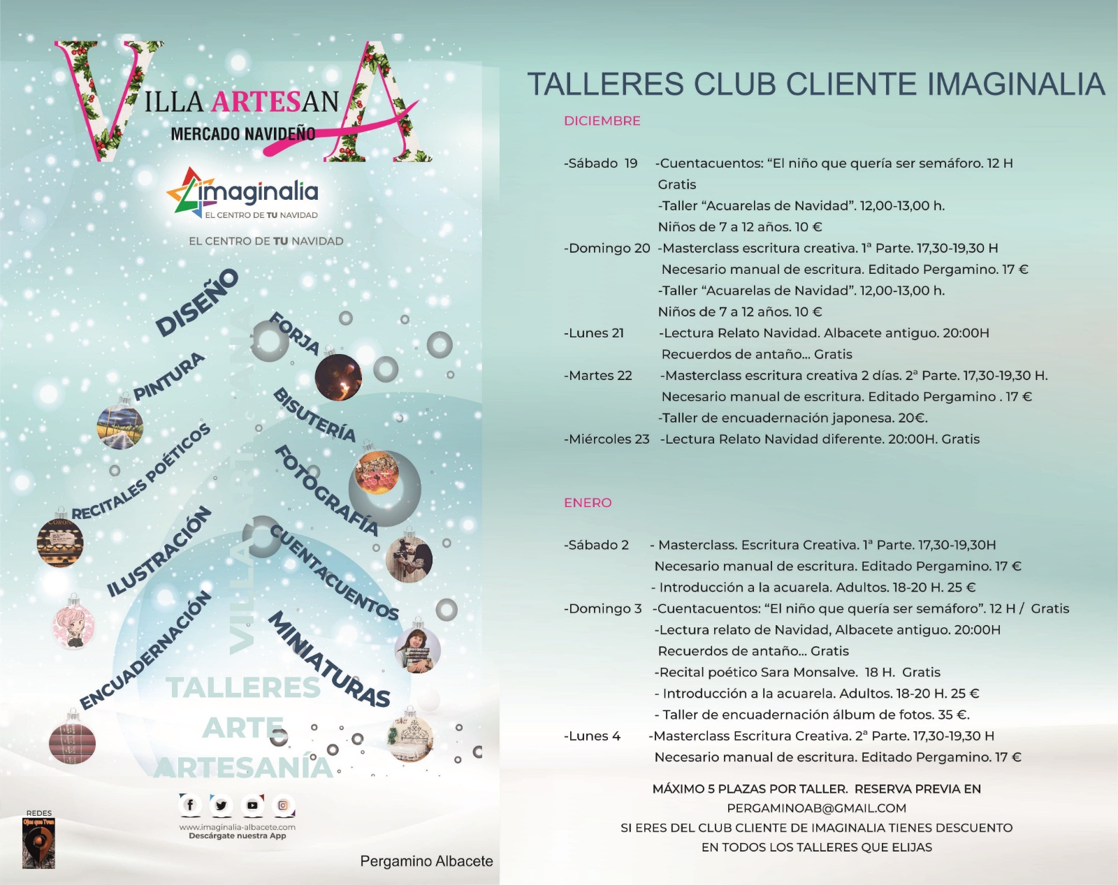 • Papá Noel: del 18 al 23 de diciembre, de 18 h a 21 h. Y el 24 de diciembre de 12 h a 14 h.